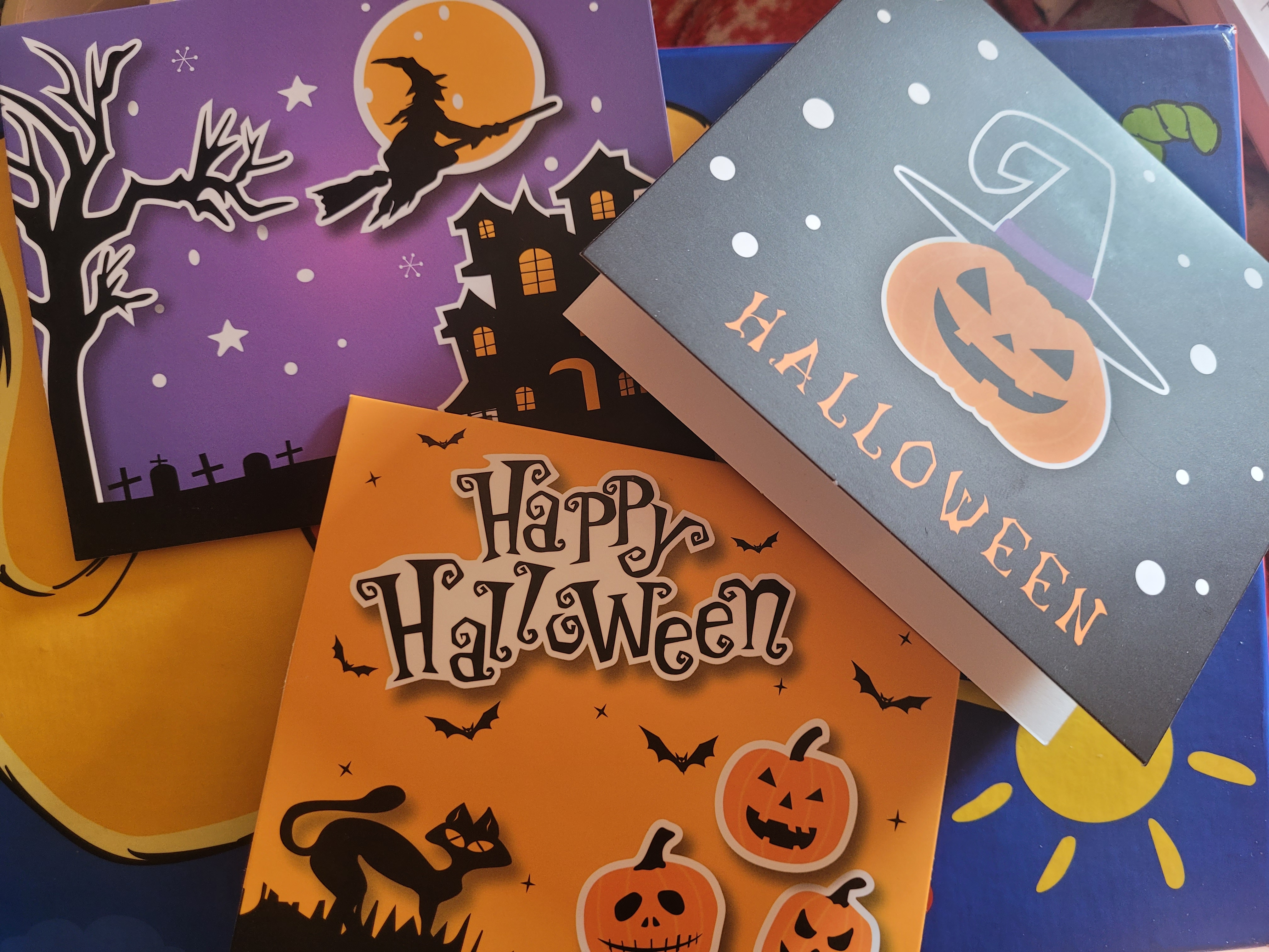 Halloween is not celebrated in the UK as much as it is in America. A few years ago, I was in a group in Goodreads (not as active as I should be) and the talk of doing a Halloween Card Exchange came about. What a great idea? We would sign up and just before the ‘Witching Month’ all those that signed up would have to send a Halloween card or postcard to everyone on the list. The cards could be homemade or bought and just before Halloween, greetings would be flying through the post. I loved doing this, but I did struggle to find Halloween greeting cards in the UK. I did order some online, but they had to be shipped from the USA. I did have to wait for them to be delivered.